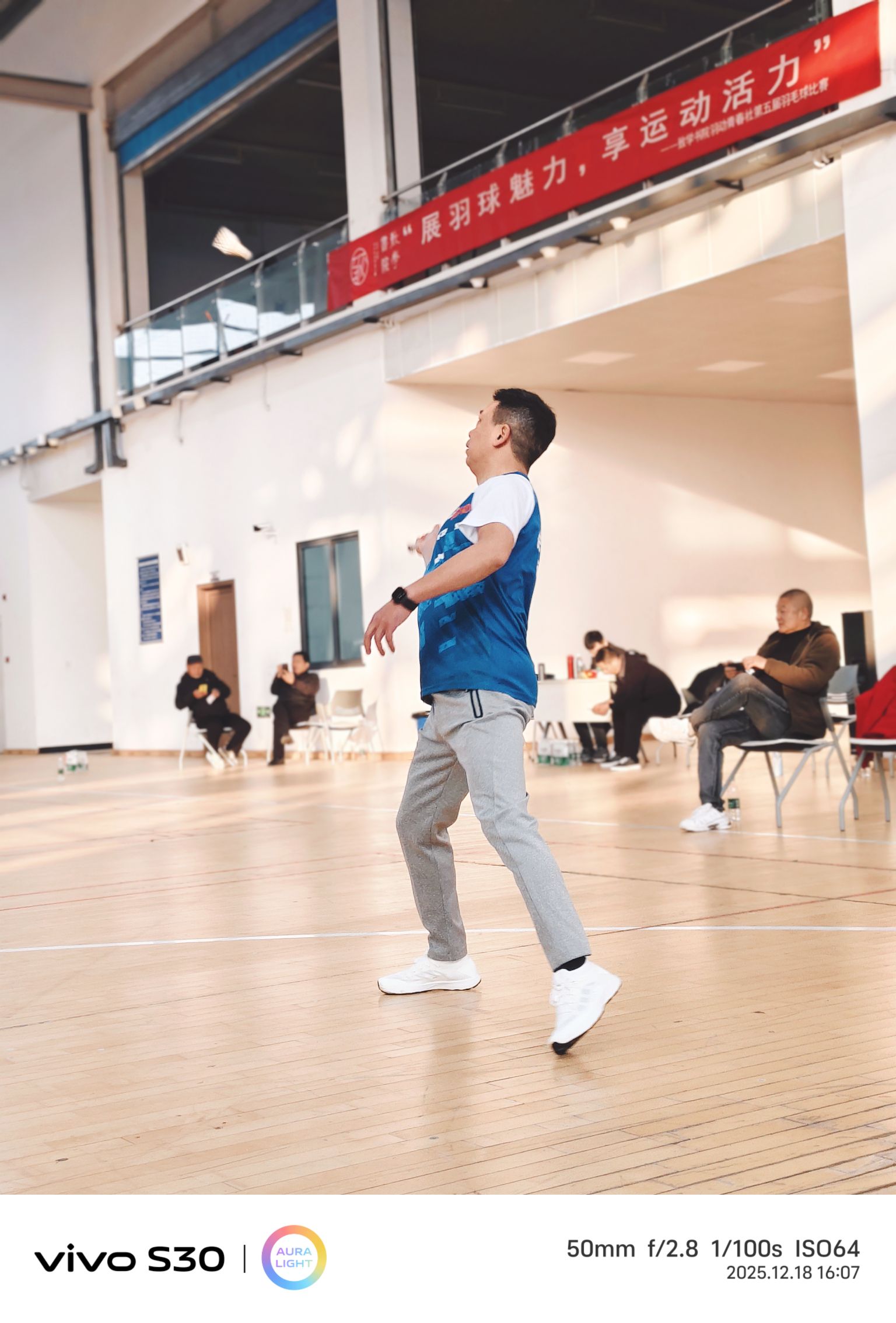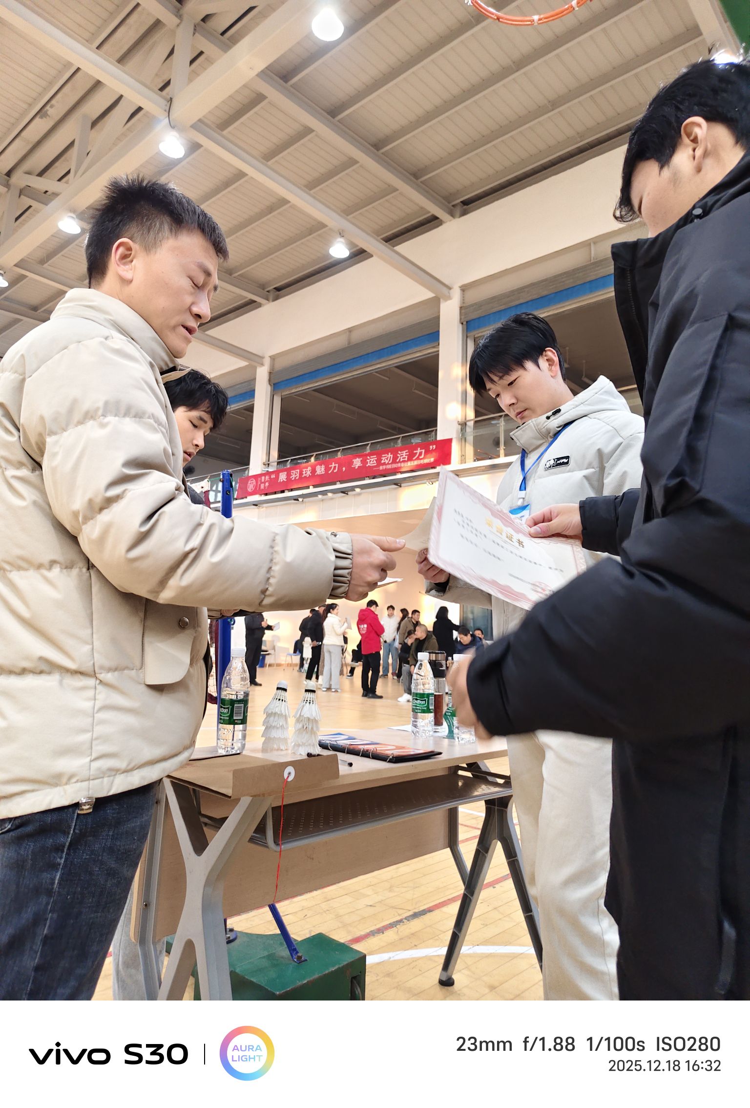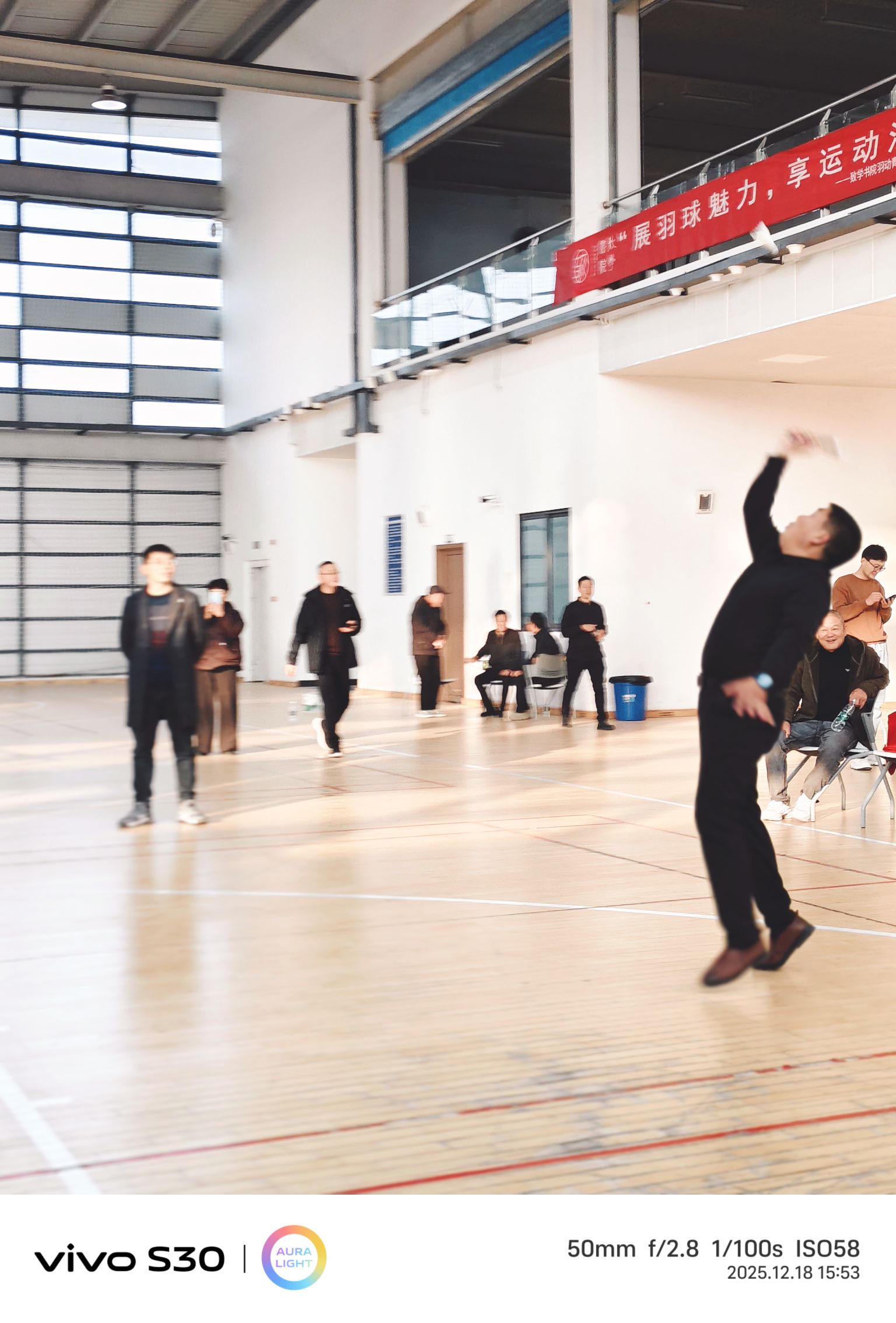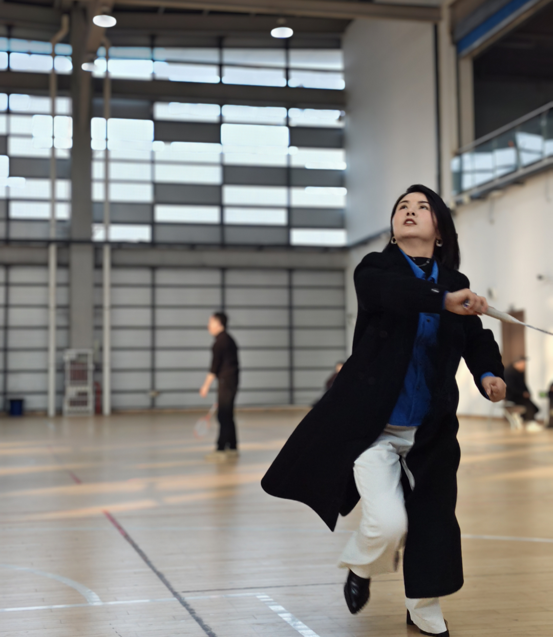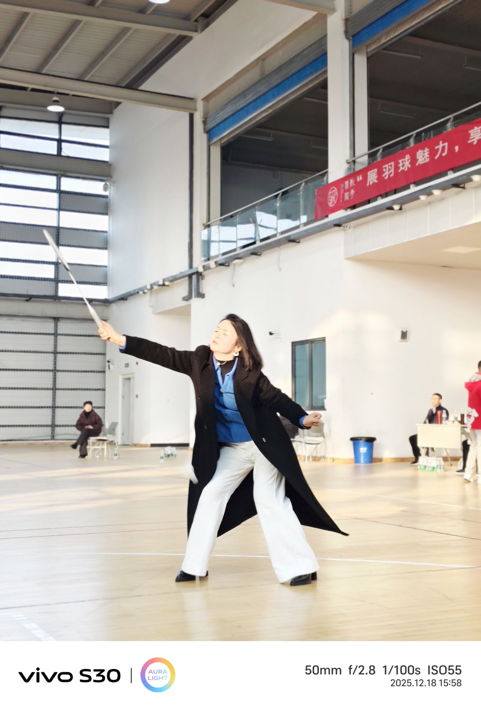 下午三點,室內羽毛球公開賽“鳴鑼開戰”。很快,男女混打,兩兩對訣,眨眼睛間進入比賽。雙方爭先恐后,勢均相當。