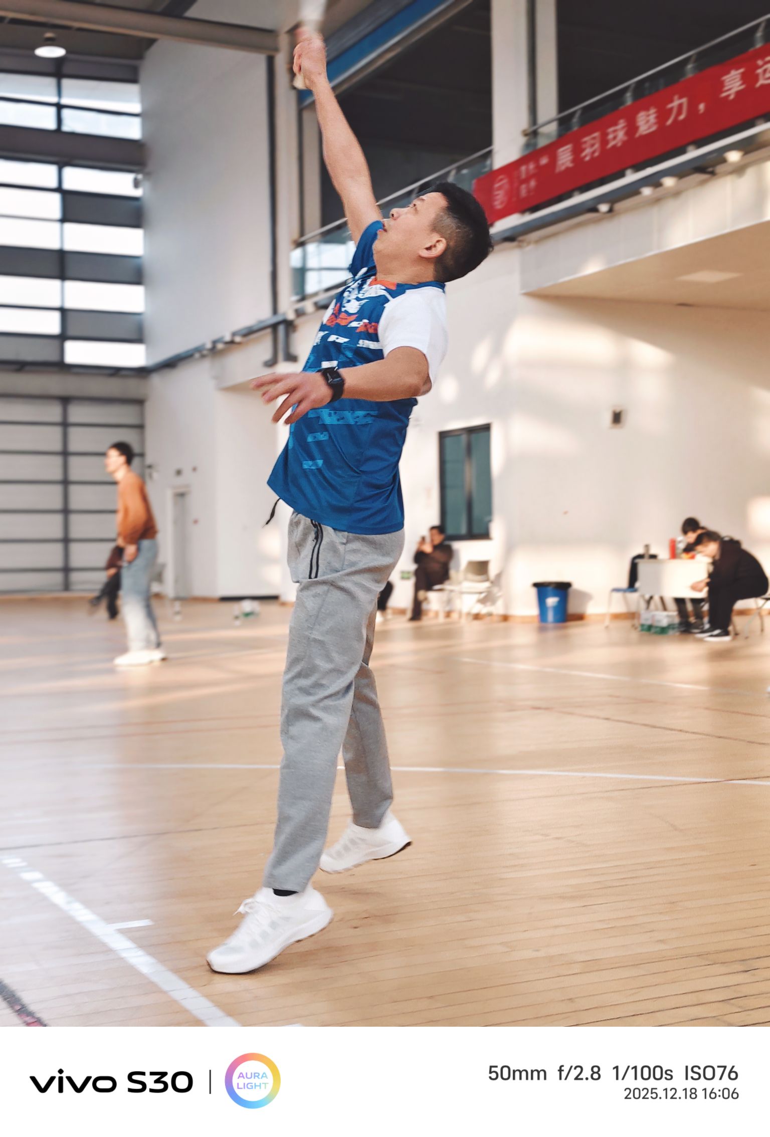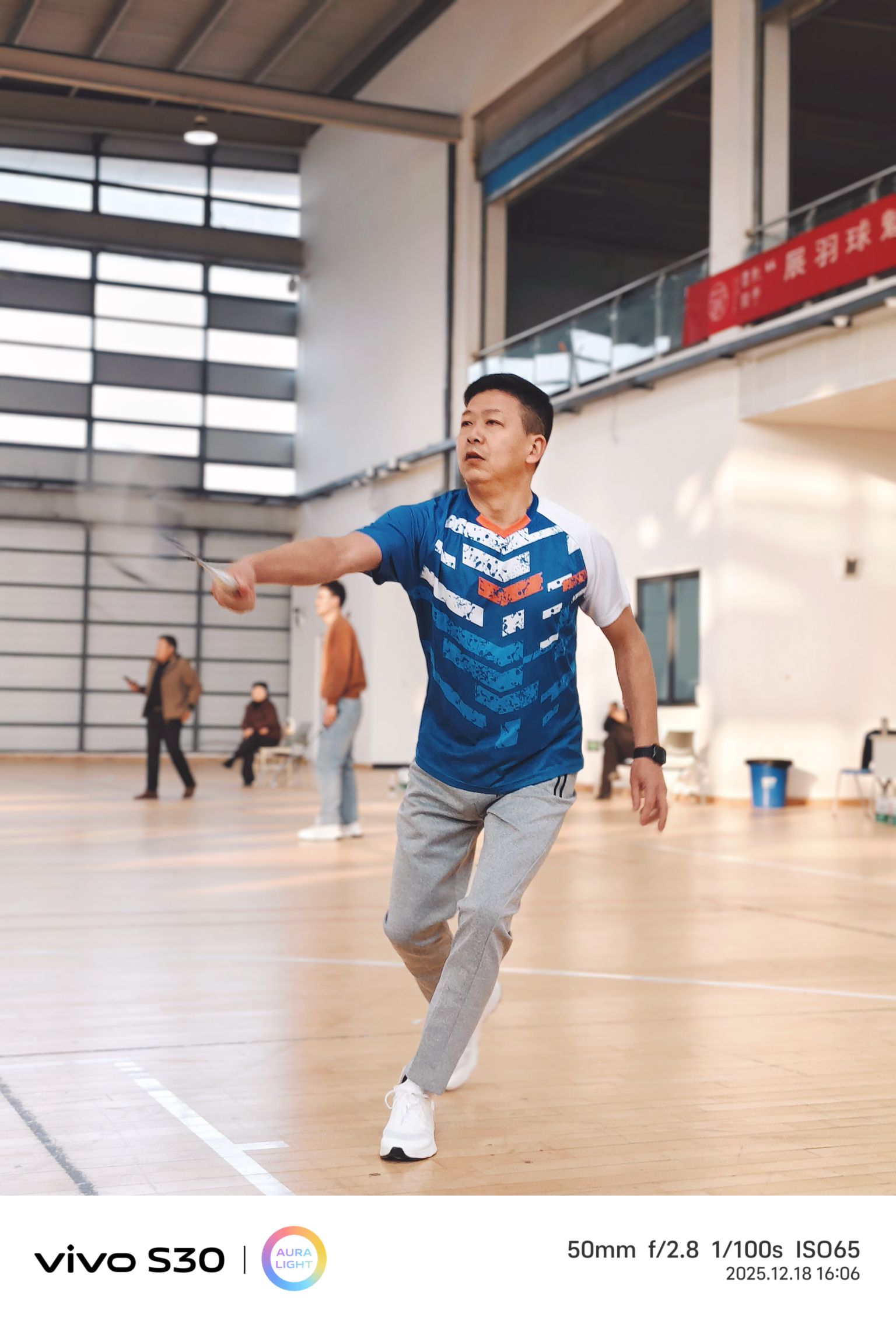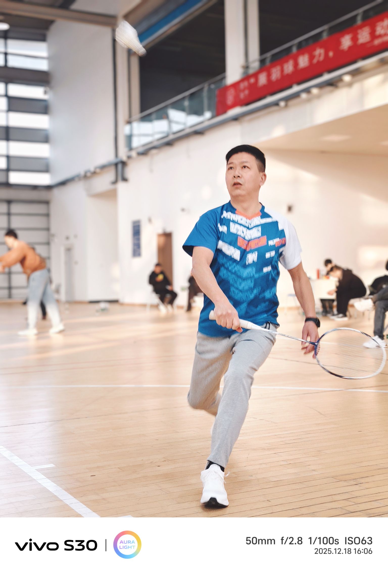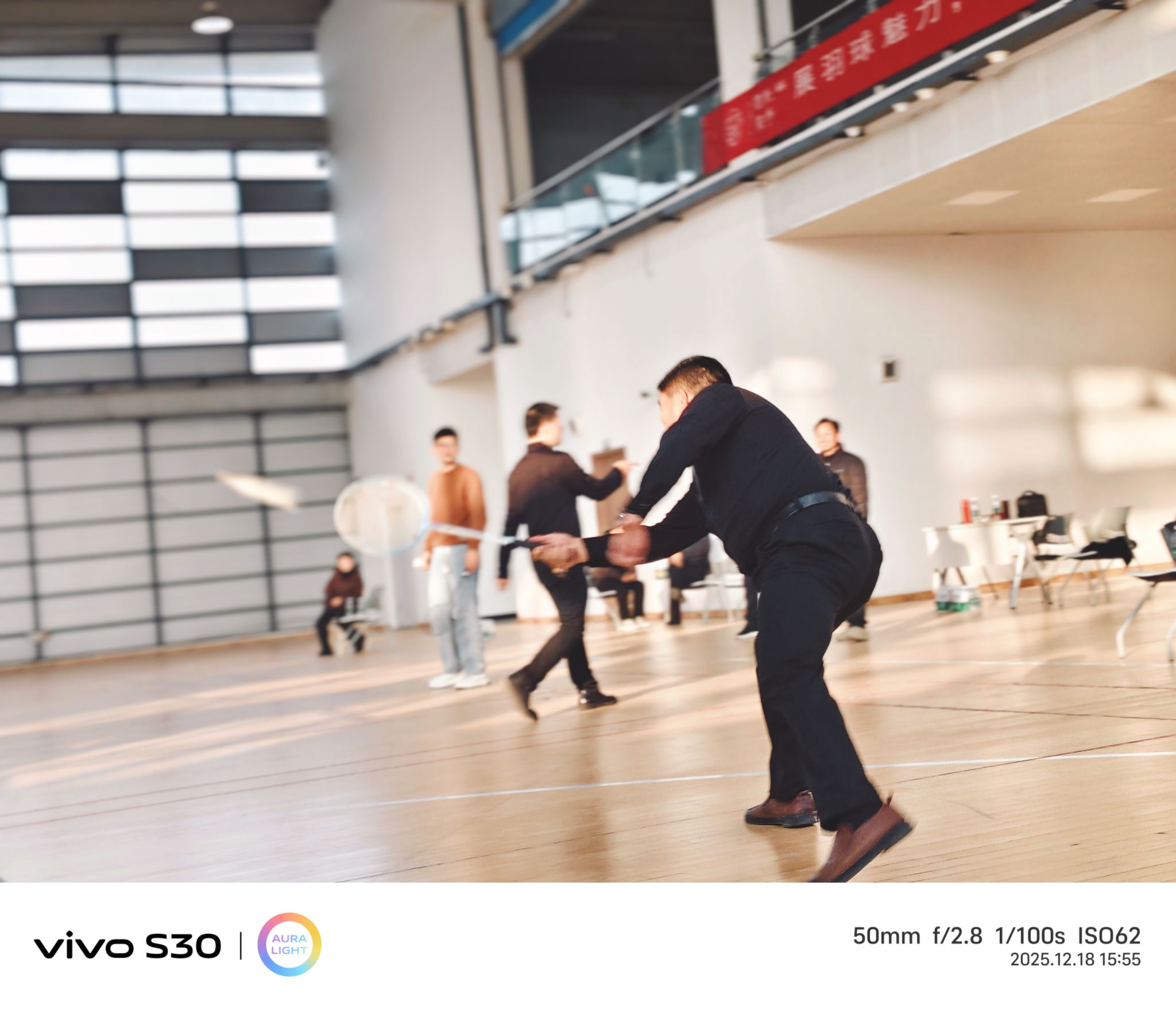 下午三點,室內羽毛球公開賽“鳴鑼開戰”。很快,男女混打,兩兩對訣,眨眼睛間進入比賽。雙方爭先恐后,勢均相當。
