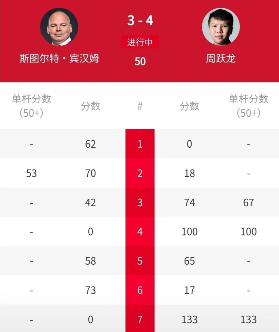 可惜手握絕佳好局的情況下,卻連丟兩局,8-9錯失冠軍。這之后,周躍龍又打進北愛爾蘭公開賽的四強,只是在半決賽以1-6輸給了最火奪冠的“小司機”杰克-利索夫斯基。