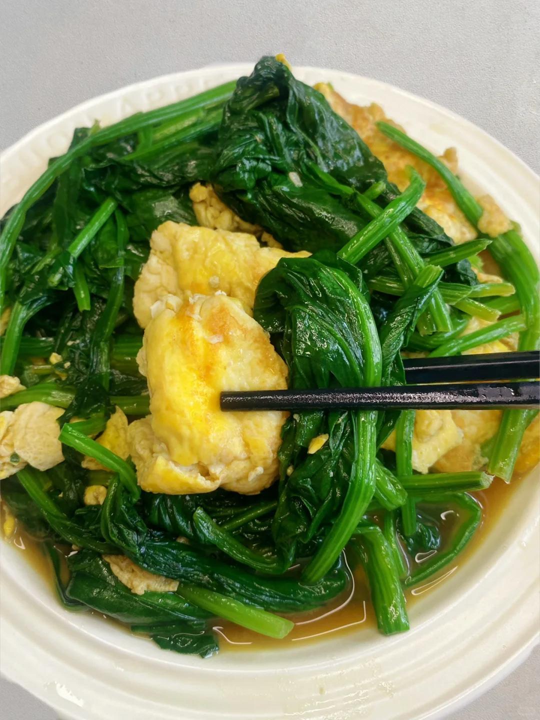 菠菜軟嫩,雞蛋鮮香,口感豐富又不油膩,每一口都是家常的味道,營養又下飯。