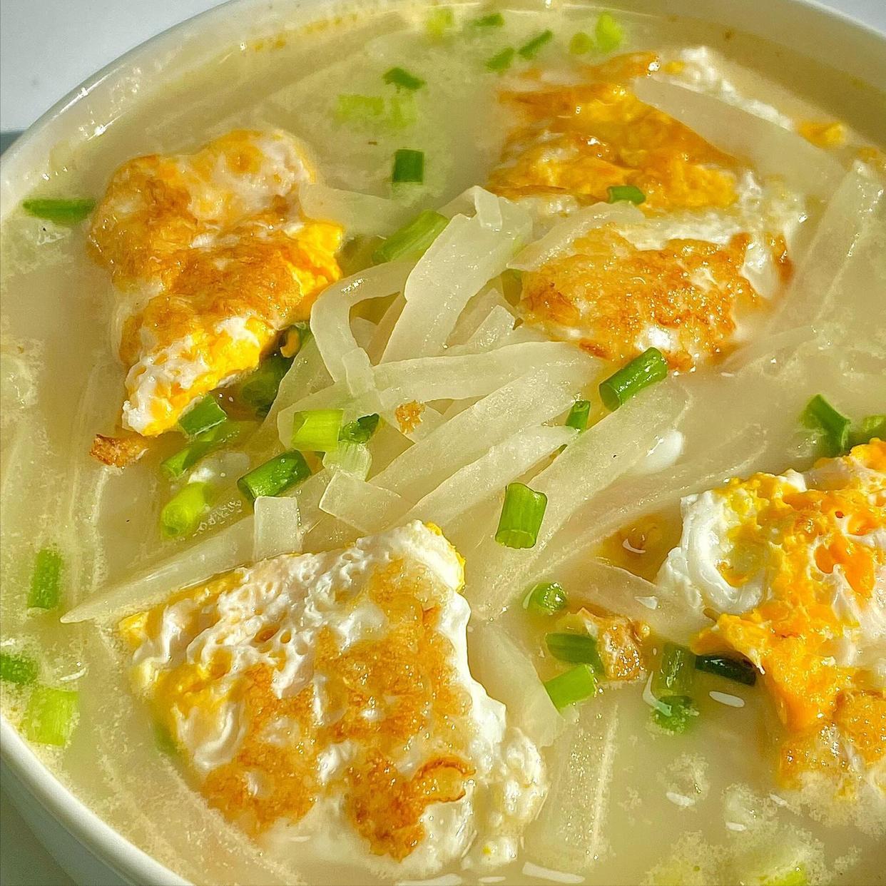 白蘿卜寓意“百財(cái)聚來”,清熱潤燥、健脾養(yǎng)胃,搭配雞蛋補(bǔ)充蛋白,湯鮮香清淡、營養(yǎng)均衡,寓意招財(cái)進(jìn)寶、身體安康。