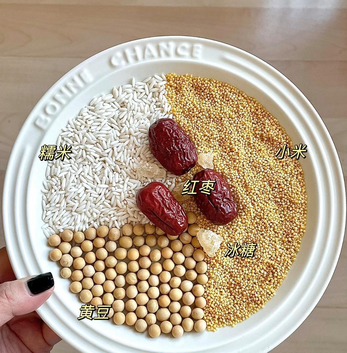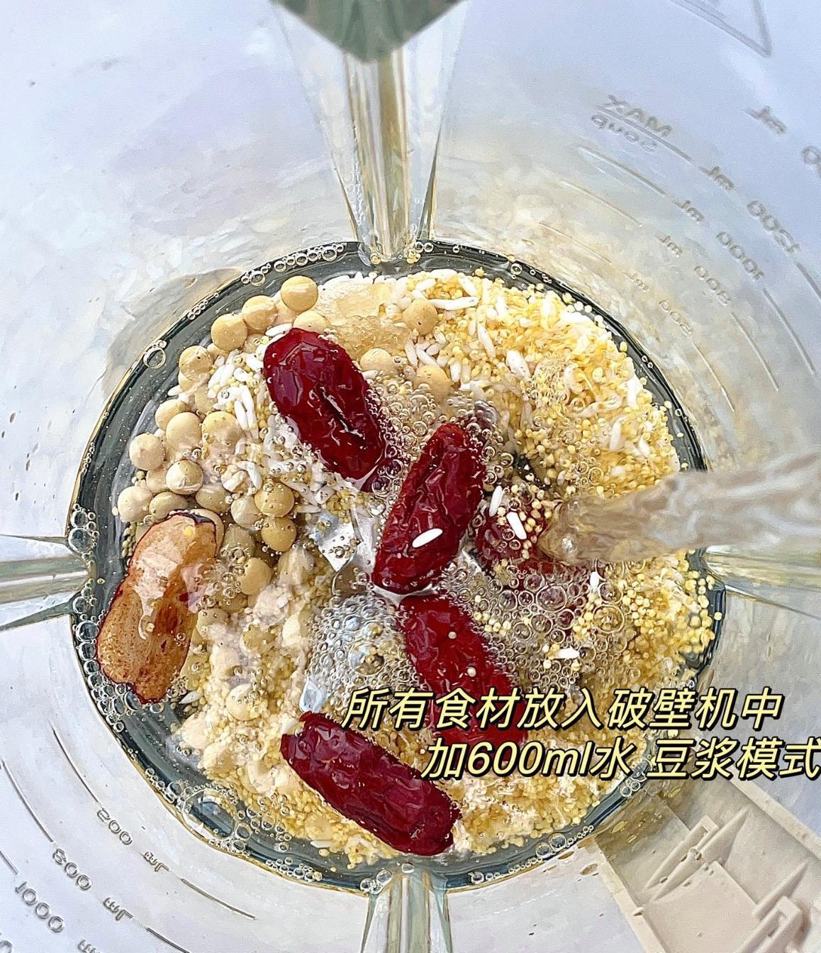 具體到那些讓人心動的搭配方案其背后的邏輯非常清晰。 “糯米小米豆漿”的核心在于“養胃”。 糯米補中益氣小米健脾和中紅棗補脾和胃、益氣生津。 現代人飲食不規律、壓力大脾胃功能普遍偏弱這杯豆漿提供的不是藥物般的強力糾偏而是一種溫和、持續的滋養。 黃豆需要提前浸泡4小時以上這個步驟不能省它能讓豆子充分吸水打出來的豆漿更細滑也減少了豆腥味讓小米和紅棗的天然香甜更突出。