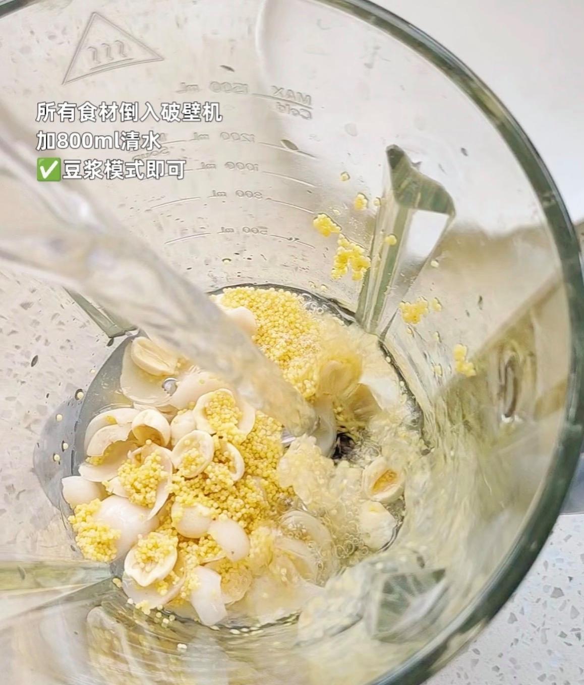 “蓮子百合豆漿”是我認為被嚴重低估的一款搭配尤其適合睡眠質量差的都市人。 它甚至沒有用黃豆而是以30克小米為基底搭配20克蓮子和20克干百合。 這里的關鍵在于“去芯蓮子和充分浸泡”。 蓮子芯味苦、性寒有清心火的功效用于日常安神豆漿其苦味會影響口感所以通常建議去掉。 干百合質地堅硬和蓮子一起提前用清水浸泡1-2小時不僅能縮短破壁機的打磨時間更能讓有效成分更好地析出。 百合清心安神蓮子補脾益腎、養心安神小米本身也能和胃安眠。 這杯豆漿提供的是一種“舒緩信號”而不是安眠藥式的強制關機。