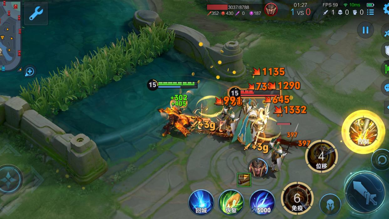有趣的是2技能增加了分身攻擊后,第一個受害者已經出現,2技能的分身機制是路過的敵人都會召喚分身,而蒙恬召喚的小兵也可以觸發他的分身,也就是說,孫悟空2技能跳一下蒙恬,直接蒙恬挨4棍子……