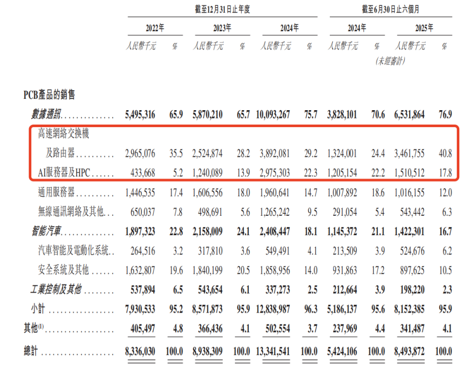 這兩大業務的猛漲成為滬電股份收入攀升的中堅力量,使公司總收入由不到百億迅速突破130億元。2024年及2025年上半年,高速網絡交換機及路由器的收入同比分別增加13.67億元及21.38億元,增速分別高達54.14%及161.48%;同期,AI服務器及HPC的收入同比分別增加17.35億元和3.05億元,增幅為139.93%和25.34%。