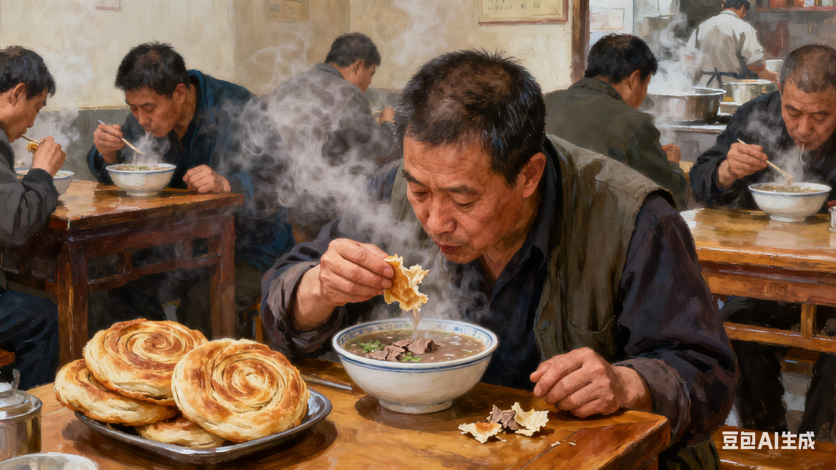 洛陽(yáng)牛肉湯不似胡辣湯濃烈,不似燴面厚重,卻藏著古都的溫潤(rùn)與實(shí)在。湯館里不分貴賤,老街坊、上班族、學(xué)生擠在一張桌前,埋頭喝湯,偶爾閑聊兩句家常,蒸汽氤氳中,每張臉都透著滿(mǎn)足。一碗湯里,熬的是歲月沉淀的滋味,喝的是市井煙火的安穩(wěn),更是洛陽(yáng)人對(duì)生活最樸素的熱愛(ài)——尋常日子,不過(guò)是清晨一碗熱湯,暖胃,也暖心。