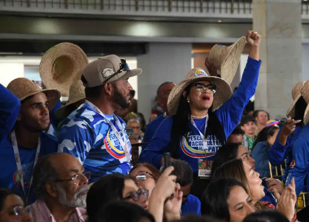 12月9日,人們在委內(nèi)瑞拉首都加拉加斯參加“美洲主權(quán)與和平人民大會”開幕式。新華社發(fā)(馬科斯·薩爾加多 攝)