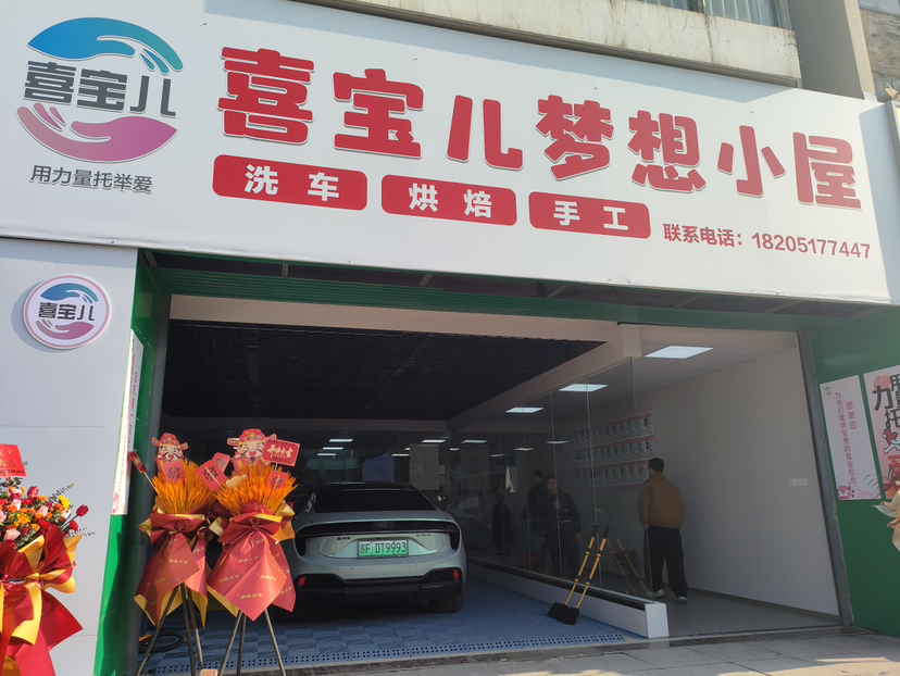 這家"喜寶兒"夢想小屋位于任港街道轄區長江中路,面積約200平方米,主要為特殊青年群體提供洗車、烘焙、手工等就業服務。目前首批已從南通特殊教育中心招募了8名特殊青年。當天,隨著小屋的啟用,22歲的唐氏綜合征患者秦湯杰拿起沖洗槍,通過為顧客洗車,開啟了人生的第一份工作。