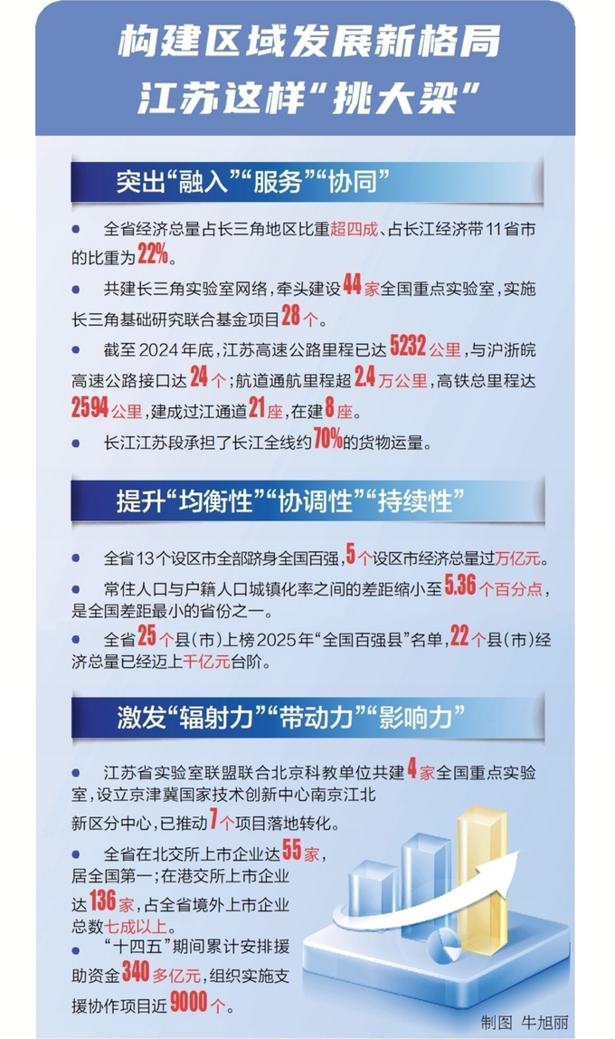 “既為一域增光,又為全局添彩”。五年來,江蘇持續(xù)強化國家重大戰(zhàn)略統(tǒng)籌對接合作,促進(jìn)科創(chuàng)、產(chǎn)業(yè)、人才等資源跨區(qū)域交流共享,努力增強聯(lián)動發(fā)展、融通銜接的合力和效能。