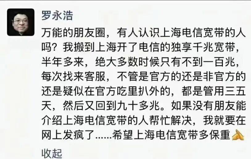 羅永浩吐槽,“我就要在網(wǎng)上發(fā)瘋了”!上海電信回應(yīng)