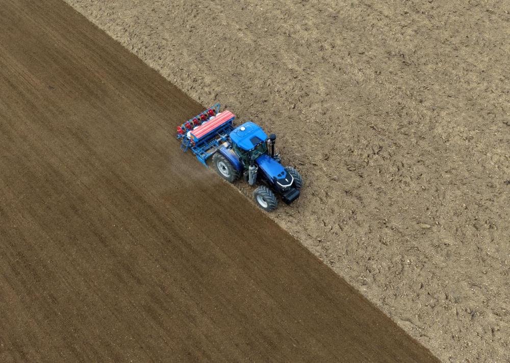 在河南省清豐縣固城鎮(zhèn)張莊里村,無(wú)人駕駛拖拉機(jī)在進(jìn)行旋耕播種復(fù)合作業(yè)。新華社記者李嘉南 攝
