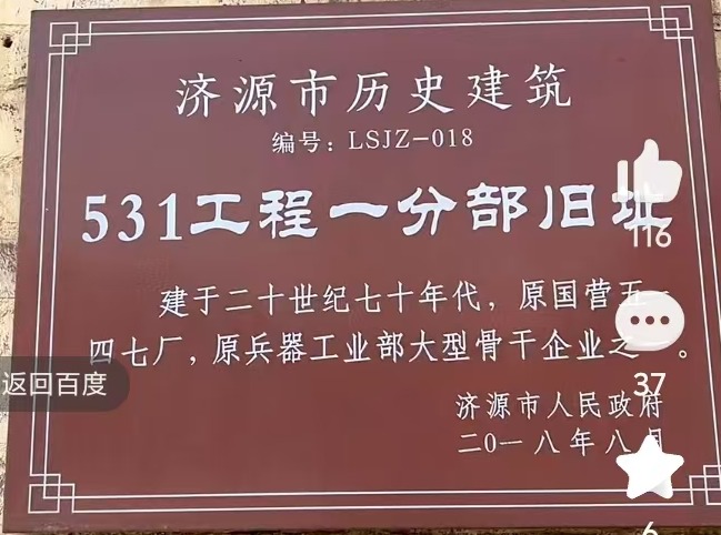 “五三一”工程,是60年代三線建設重點工程,也是國防軍工企業,是亞洲制造十二門火炮基地。我參軍后來到河南濟源“五三一”一分部“長征機械廠”,我們在這里全身心投入到建設中。