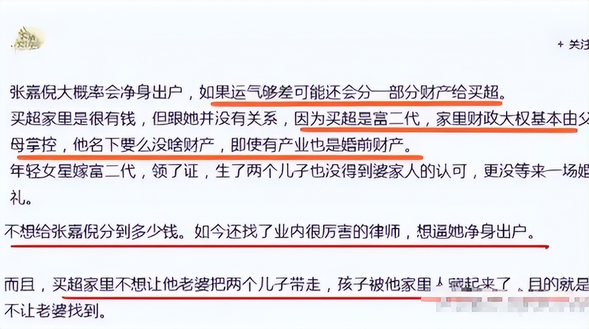 據傳,買超家憑借律師背景和婚前早已安排好的財產布局,讓她幾乎分不到多少家產。
