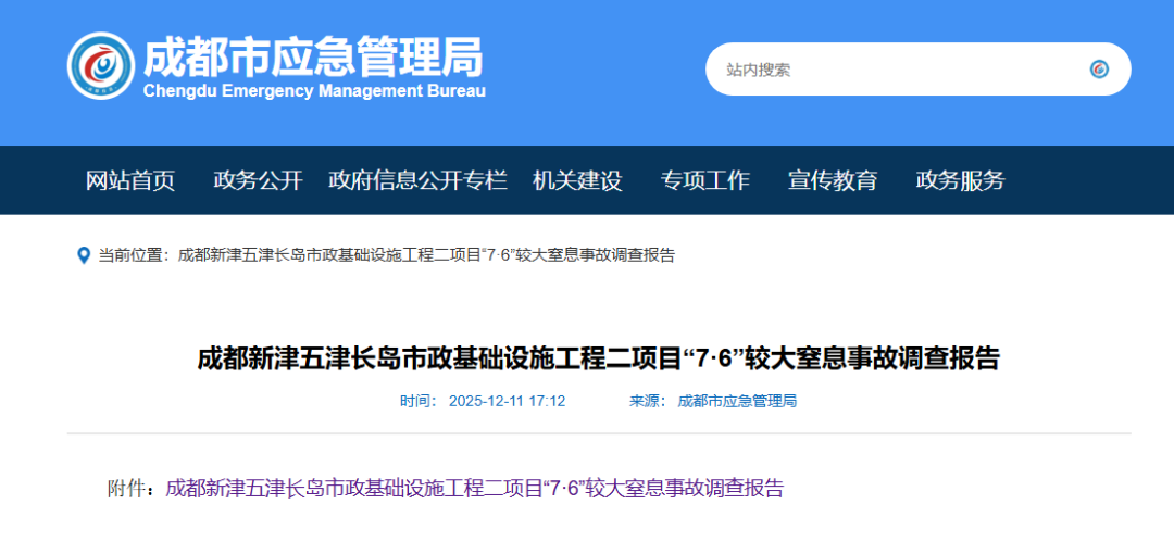 經調查認定,事故直接原因為檢測單位作業前未對污水井進行通風和氣體檢測,作業人員在未穿戴任何個人防護用品的情況下進入高濃度二氧化碳、氧氣含量不足的污水井內作業,導致作業人員窒息。遇險后,井外現場監護人及工友盲目下井施救,造成事故傷亡擴大。