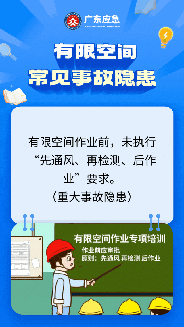 有限空間作業須遵循“先通風、再檢測、后作業”原則,作業中斷后重啟作業的,需重新通風、檢測合格。