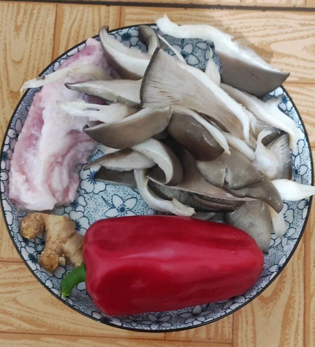處理食材:五花肉切成3毫米厚的薄片;平菇放入清水浸泡5分鐘,洗凈后擠干水分備用,避免炒時出水過多。好甜椒切段。
