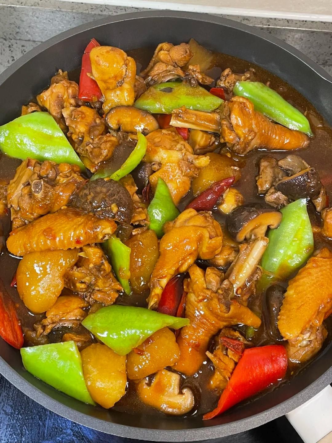 放入香菇片,繼續燉十五分鐘,直到雞肉入味、香菇軟糯,最后開大火收汁,加少許鹽和胡椒粉調味即可。