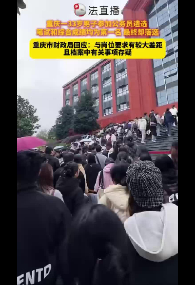近日,重慶33歲男子參加公務員遴選成績第一卻落選,引發熱議。