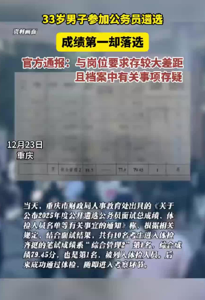 重慶通報“男子參加公務員遴選,成績第一卻落選”