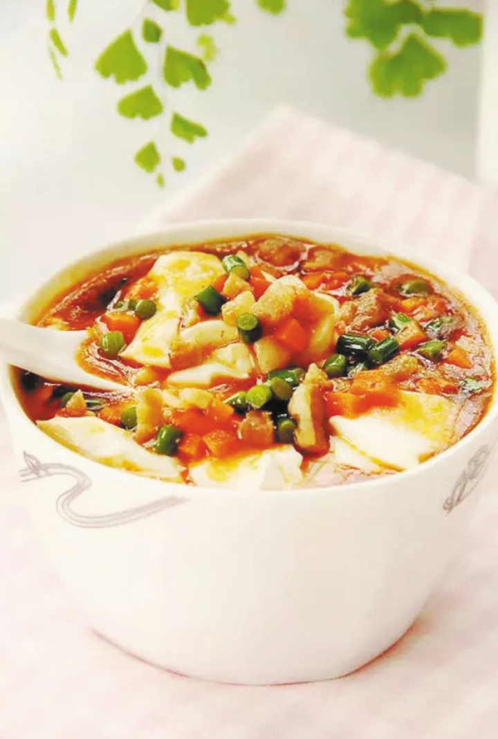 湯鹵佐料與豆腐腦的結合相映成趣。