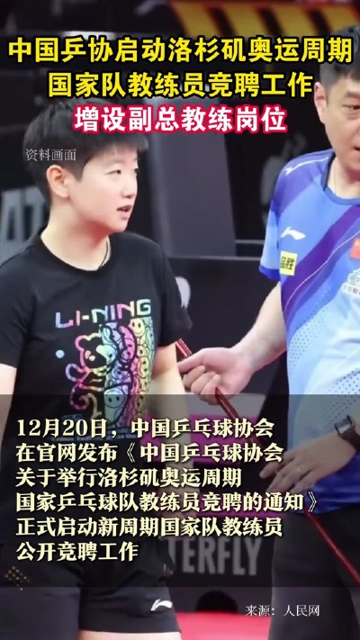 新華社北京12月20日電 中國乒乓球協(xié)會官網(wǎng)于20日發(fā)布《中國乒乓球協(xié)會關于舉行洛杉磯奧運周期國家乒乓球隊教練員競聘的通知》,正式啟動新周期國家隊教練員公開競聘工作。
