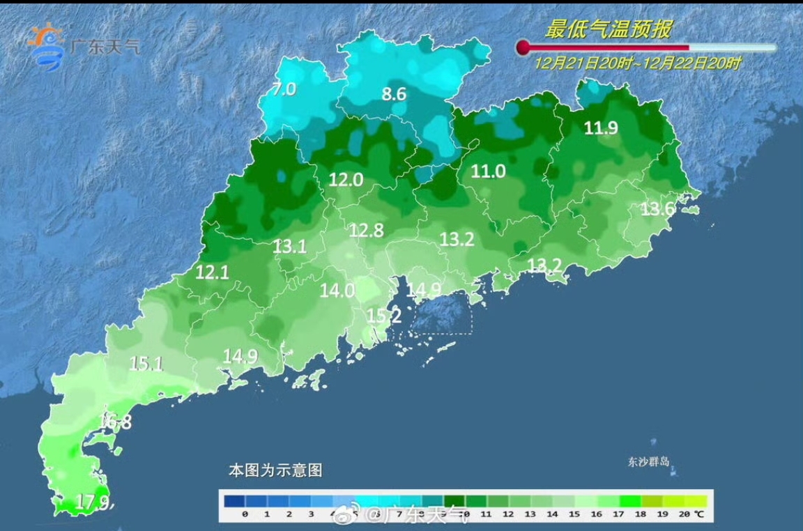 21日我省大部多云間晴,局部有零星小雨。最低氣溫:韶關(guān)、清遠(yuǎn)北部、河源北部市縣7℃—11℃,珠三角中南部和南部沿海市縣17℃—20℃,其余市縣13℃—16℃。