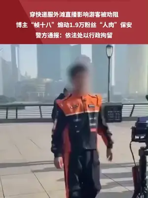 2025年12月11日10時30分許,網民袁某(男,32歲)身著網上購得的快遞員工作服,在上海外灘江堤網絡直播時占用公共區域影響游客通行秩序,外灘風景區保安員對其開展勸阻時,袁某拒不配合管理,進行言語挑釁并煽動直播間觀眾“人肉”保安員,造成惡劣社會影響。