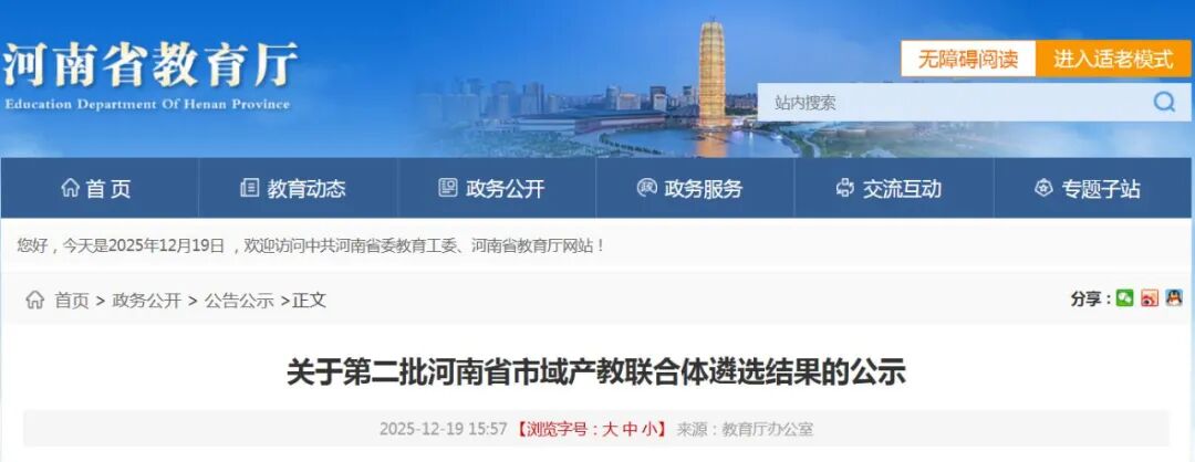 根據《河南省教育廳辦公室關于開展第二批河南省市域產教聯合體建設的通知》(教辦職成〔2025〕229號)要求,經各聯合體自主申報,省教育廳組織專家綜合評審,擬推薦鄭州中原科技城智慧交通市域產教聯合體等10個市域產教聯合體為第二批河南省市域產教聯合體(名單見附件),現予以公示。