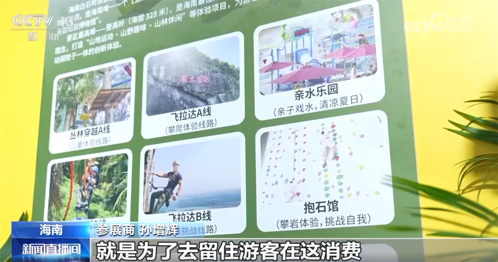 參展商孫增輝稱:“我們在打造的沉浸式和體驗感的體驗旅游,就是為了留住游客在這里消費,我們將迎來更多的國際和國內(nèi)的游客來海南進(jìn)行消費,助力海南國際旅游消費中心的建設(shè)?!?/p>