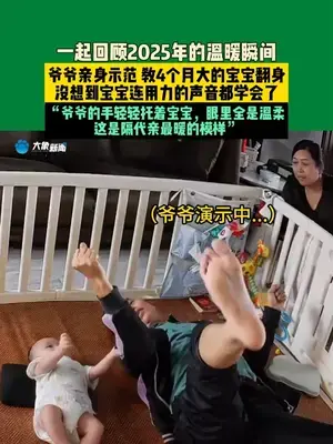 一起回顧2025年的溫暖瞬間,爺爺親身示范教4個月大的寶寶翻身,沒想到寶寶連用力的聲音都學會了?!盃敔?shù)氖州p輕托著寶寶,眼里全是溫柔,這是隔代親最暖的模樣?!?/div>