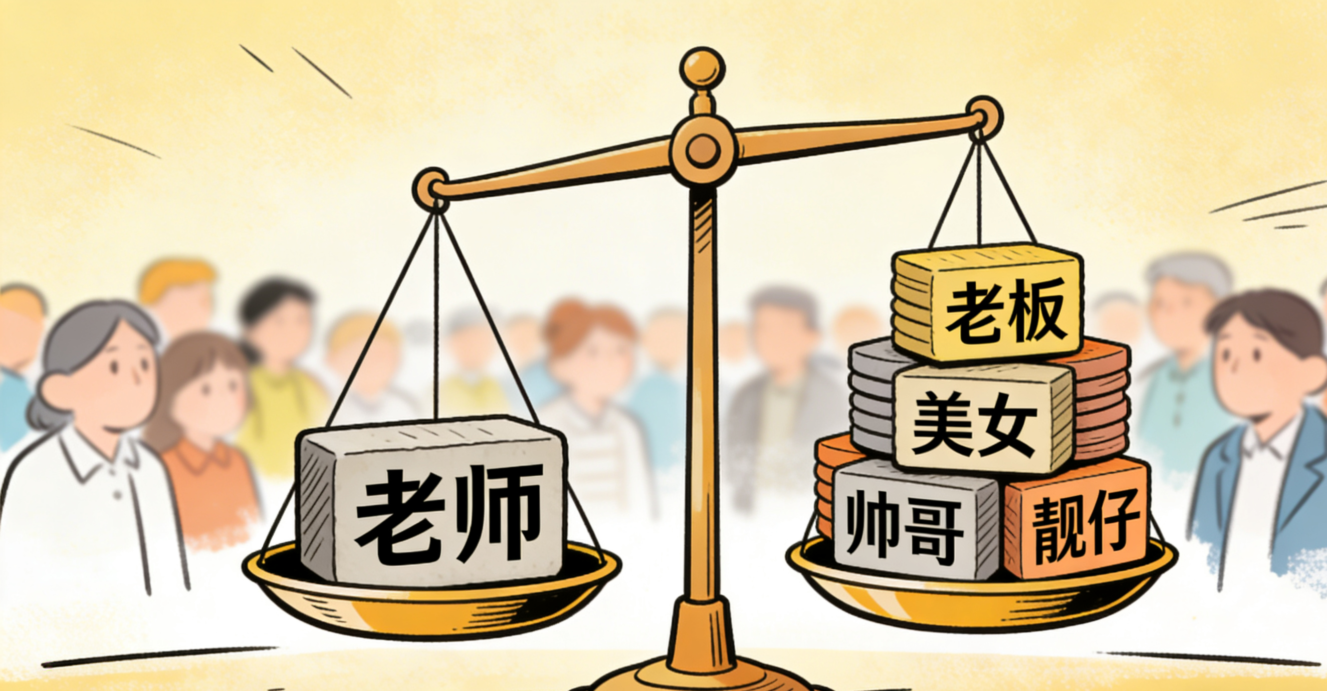 本該帶著尊師重道分量的詞,愣是被糟蹋成了和老板、美女、靚仔沒兩樣的廉價客套。這滿大街泛濫成災的“老師”,不就是一場徹頭徹尾的稱呼亂相嘛!