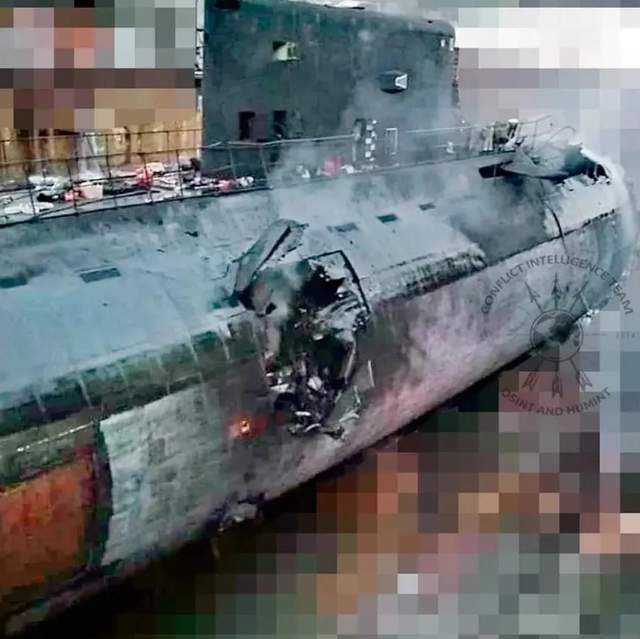 (烏軍稱俄軍潛艇的尾部遭到重創)
