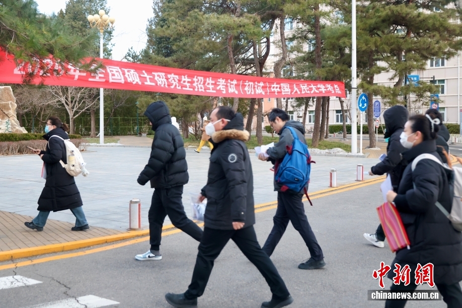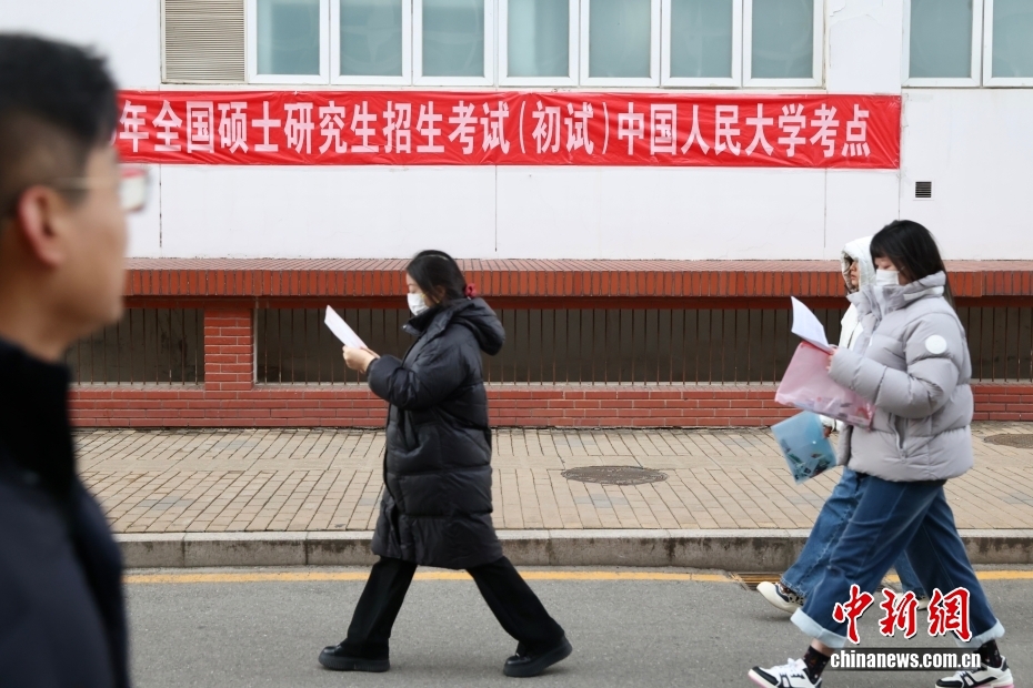 12月20日,在位于北京海淀區的中國人民大學考點,考生步入考場,準備考試。當日,2026年全國碩士研究生招生考試初試正式開考,此次考試報名人數為343萬,考試時間為12月20日至21日。