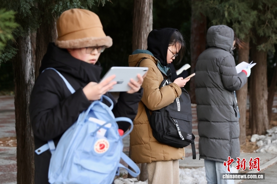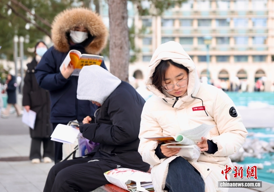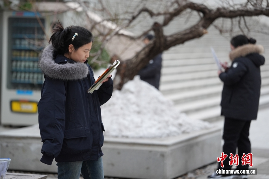 12月20日,考生在位于北京海淀區的中國人民大學考點看書復習。當日,2026年全國碩士研究生招生考試初試正式開考,此次考試報名人數為343萬,考試時間為12月20日至21日。