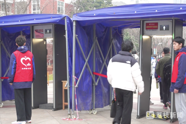 上午7點半,在河海大學西康路校區考點,記者看到,學校在安檢區域特別搭建了暖棚,并設有專門的存包處,供考生們集中存放物品。在南京航空航天大學將軍路校區,校園主干道,各種橫幅指引保證大家順利找到考場,各考場樓棟門口擺放了考場規則、考試誠信公告等。上午8點起,考生們手持準考證和身份證,陸續步入考場。