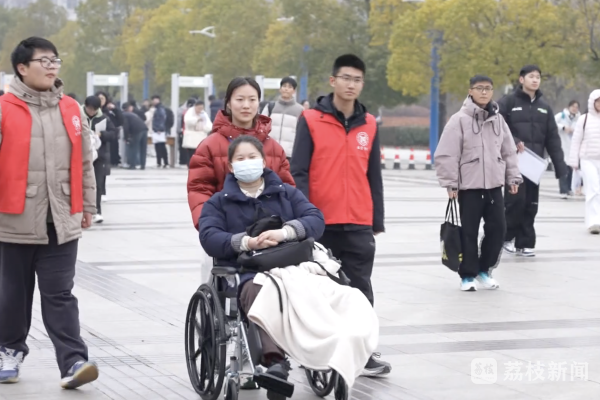 在宿遷學院考點,考生崔越告訴記者,“考前幾日意外受傷,腳踝骨折,當時很擔心趕考問題。但從進入考點起,就有志愿者主動接應,還特意留下了聯系方式,方便我隨時求助。”