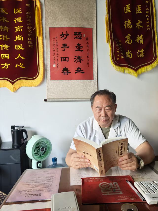 如今已是國醫楷模的王新民,雖兩鬢斑白,卻依然步履堅定;在他的診桌案頭,仍然擺放著堆積如山的參考書籍,朱良春、李振華、李可、郭維淮、王永炎等國醫大師和院士的醫學專著,都被他翻得卷邊發毛。《西土醫話》的扉頁上,恩師謝西土的題詞"醫道在仁"仍熠熠生輝。他在診室和藥柜前的身影,依舊忙碌而從容。他說:“我這輩子沒別的追求,就是盼著老百姓少生病、能看得起病、看得好病。”這句樸實的話語,恰是他四十六載醫路的初心,也是一位中醫人對“惠民生”最動人的回答。