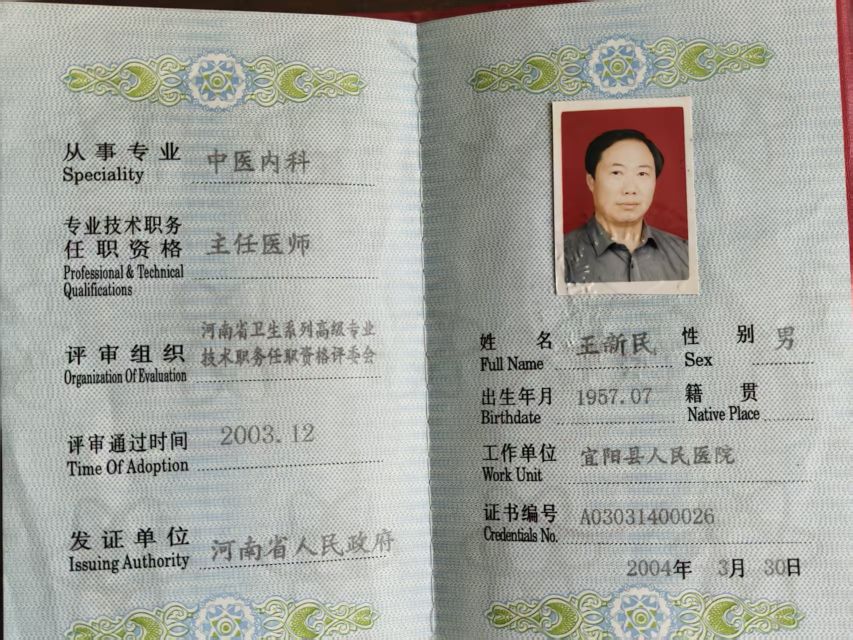 憑借這份執著與專注,使他的醫術在實踐中不斷精進。1985年的嚴冬,一位被誤診為"風熱感冒"的患兒在他細致的"望聞問切"下,被確診為"溫病逆傳心包",經他及時調整治療方案后轉危為安;此案還被錄入《中醫誤診案例分析》一書中,成為中醫辨證論治的經典案例。2003年,依其扎實的理論功底與豐富的臨床經驗,王新民順利通過了全省晉升正高級職稱的專業理論、外語考試、論文答辯和省級評審,成為洛陽市最年輕的中醫內科主任中醫師。