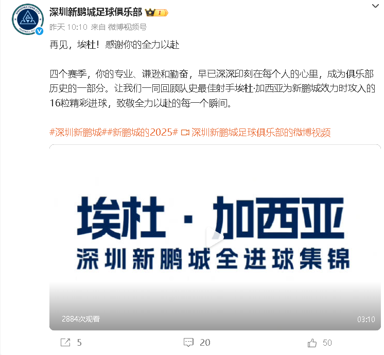 當深圳新鵬城官方宣布埃杜·加西亞合同到期離隊的消息傳來,無數球迷的社交媒體瞬間被刷屏,為什么這樣說?這位為球隊出戰94場、狂轟32球+12助攻的隊史第一射手,就這樣悄然告別了中國足球的舞臺。沒有煽情的告別儀式,沒有鋪天蓋地的新聞發布會,只有一句冰冷的“合同到期”,卻讓所有深足球迷的心碎了一地,俱樂部也太沒有人情味了吧!如何看他的離開?#2025新星計劃4期##創作挑戰賽十一期##2025頂端人氣創作者 #