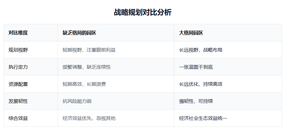 格局體現在規劃引領的長遠定力上,這是園區可持續發展的核心所在。真正具備格局的園區,絕不會被短期政績驅動所干擾,而是堅持"一張藍圖干到底"的戰略定力,在規劃初期就充分考慮產業升級、生態保護、公共服務等多方面需求,為未來發展留足空間。這種不被眼前得失迷惑的規劃智慧,讓園區發展始終保持正確方向,避免了"建了再改、改了再建"的資源浪費,為持續發展奠定堅實基礎。