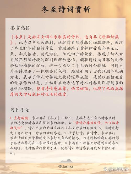 “黃鐘應律好風催”,《冬至》詩以莊嚴的禮樂意象開篇,將我們帶入一個宏大而整飭的時序秩序中。在理學漸興的宋代,冬至不僅是自然節氣,更是國家祭祀、家族團聚、陰陽轉換的文化節點。朱淑真卻在這個被禮法高度定義的日子里,悄然編織進另一種時間——那是屬于她個人生命的、充滿情感溫度與隱秘痛楚的“陰中之陰”。一首《冬至》,竟成兩種時間觀激烈角力的詩意戰場。