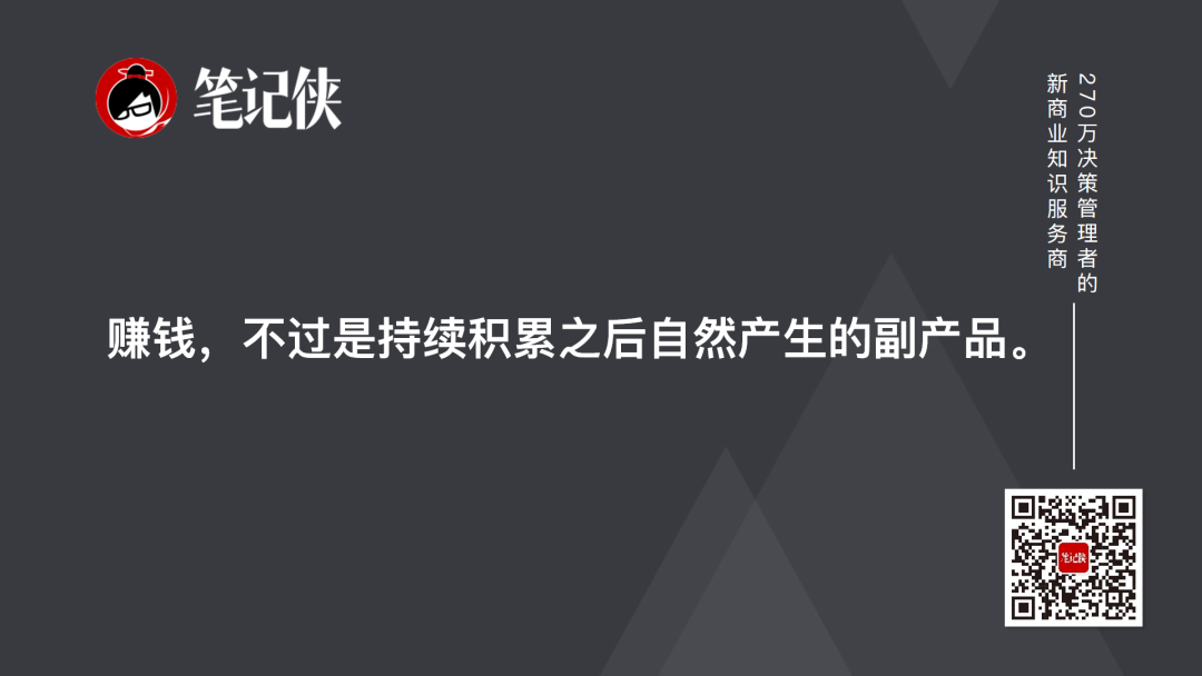 “賺錢,不過是持續積累之后自然產生的副產品。”