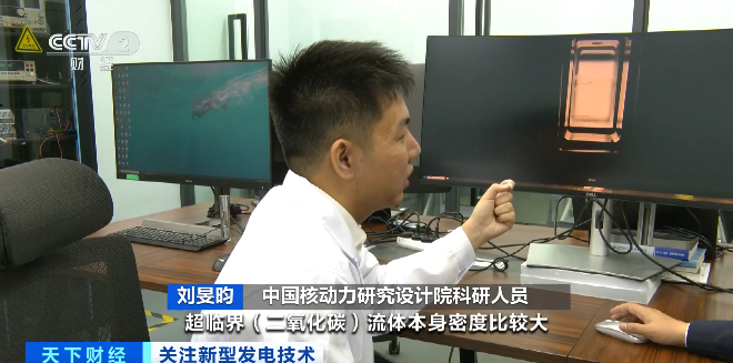 中國核動力研究設計院科研人員 劉旻昀:超臨界(二氧化碳)流體本身密度比較大,所以它的做功能力更強,我們經常開玩笑說二氧化碳是“天選之子”,是從20多種工質里挑選出來,發現二氧化碳是唯一一種具有獨特做功優勢的。