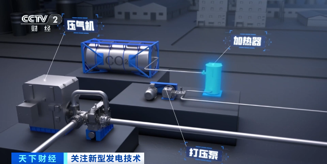 總臺央視記者 平凡:在超臨界二氧化碳發電實驗室,這臺裝置正在將二氧化碳提升至超臨界狀態,也就是在常溫31攝氏度左右提升到74個大氣壓。相比于傳統的水蒸氣,超臨界二氧化碳的發電效率將提升5至8個百分點。