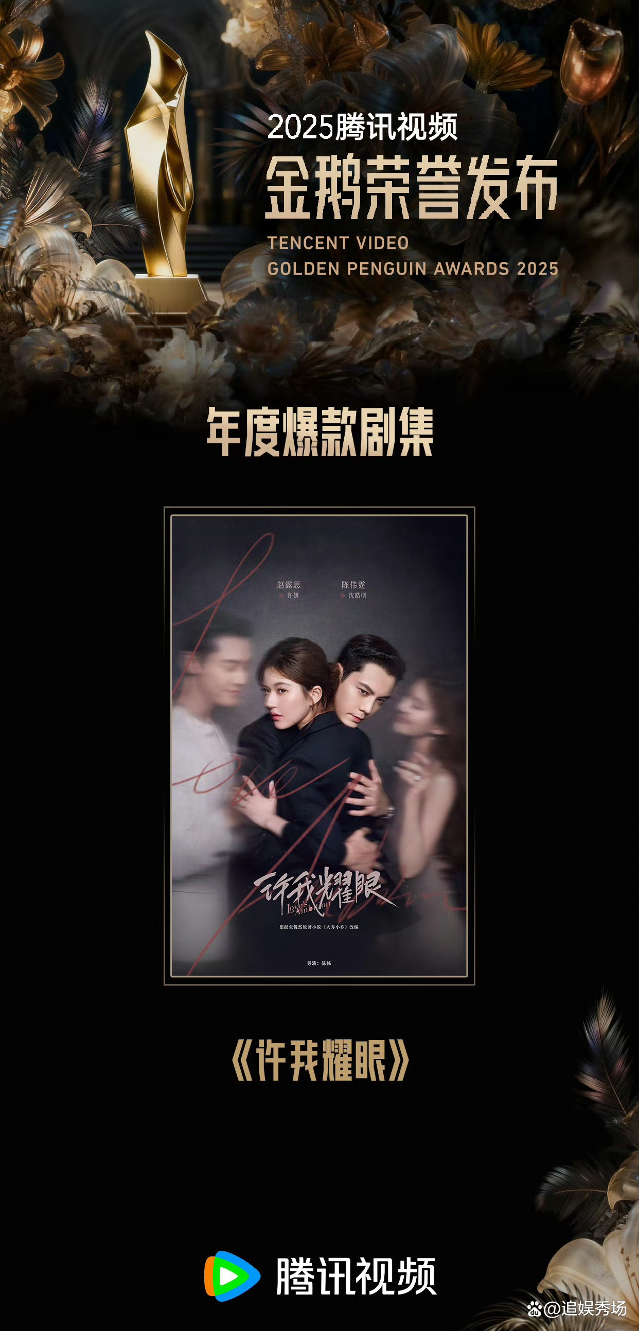 年度焦點獎項與贏家劇集,《許我耀眼》包攬六項重磅榮譽,年度劇集即平臺最高獎+ 年度爆款劇集,打破騰訊都市劇歷史熱度峰值,被認(rèn)證為現(xiàn)象級作品。