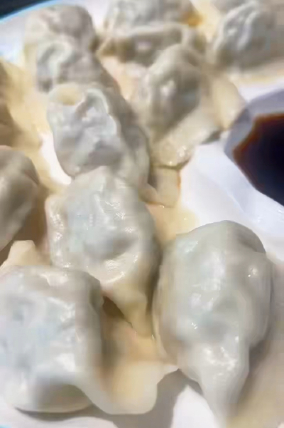鄭州冬至吃餃子,韭菜豬肉餡的美味可口,蘸著醋配著大蔥才好吃