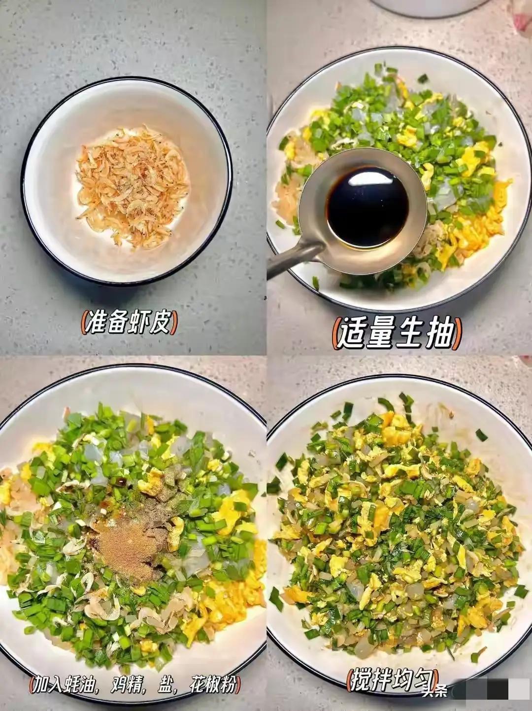 要點:磷蝦干炒一下是靈魂。茴香怕水,務必干爽。這餡追求本味,別放生抽、蠔油,以免奪了鮮氣。