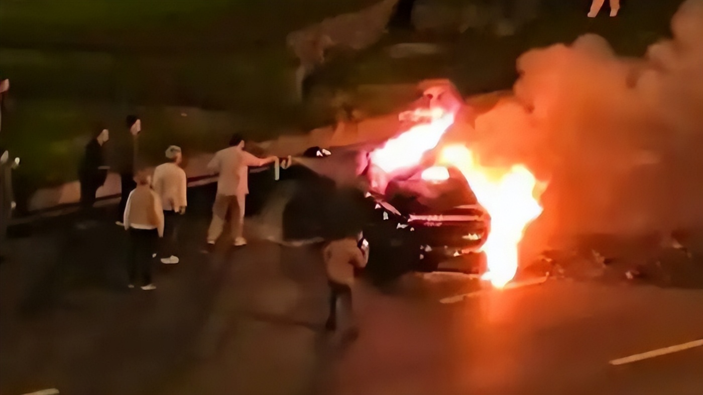 成都凌晨的天府大道上,烈焰中的轎車前,路人圍著車身焦急地拉扯著與車身完全齊平的門把手,最終只能用電鋸切開鋼板,然而一切為時已晚。