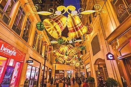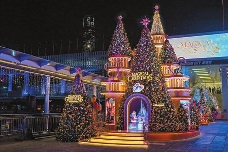 200米長的林蔭步道上空滿布聖誕燈飾。