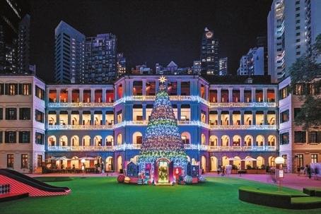 聖誕樹為大館歷史建築牆上增添溫暖光芒。